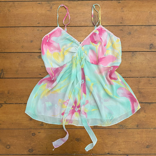 vintage 00s blue and pink floral fairy cami