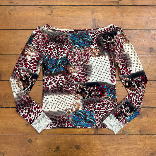 vintage 00s paisley leopard print off shoulder top