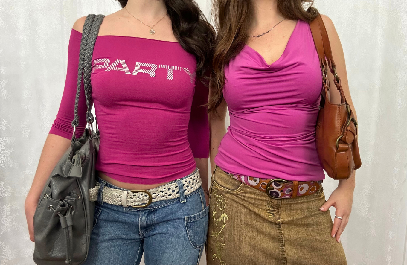 vintage 00s berry pink graphic off shoulder top