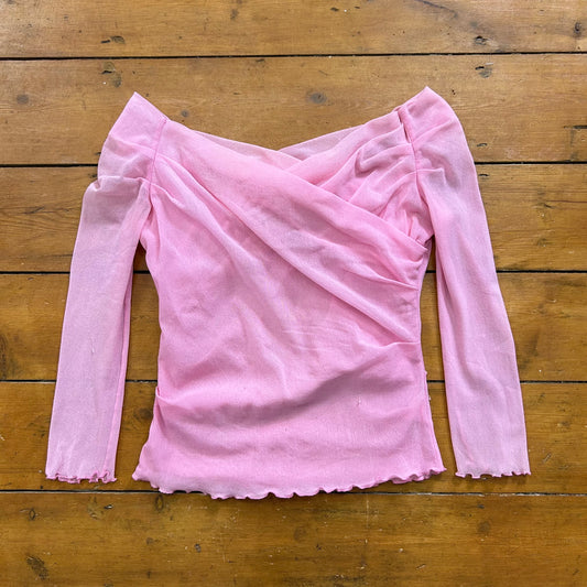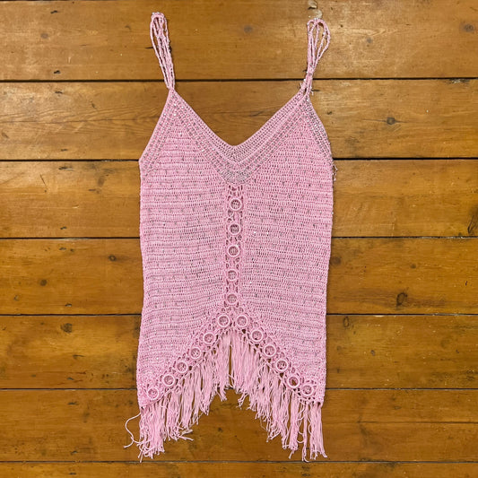 vintage 00s pink crochet tassel wrap skirt / shawl