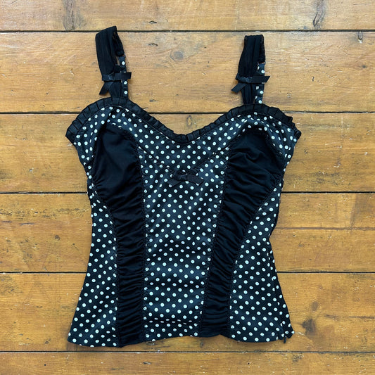vintage 00s black and white polka dot trench coat and mini skirt co ord