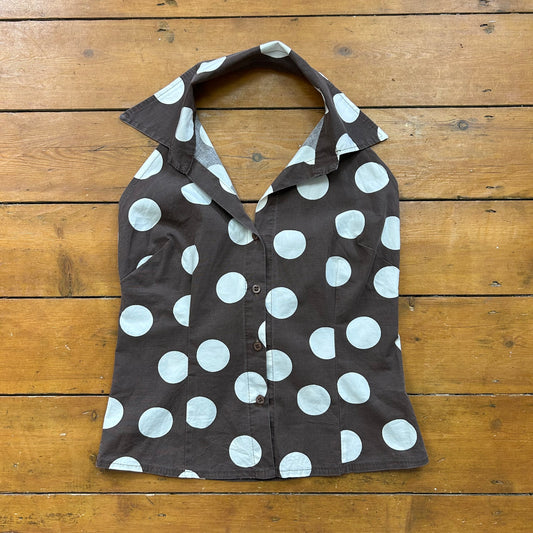 vintage 00s brown polka dot halter top