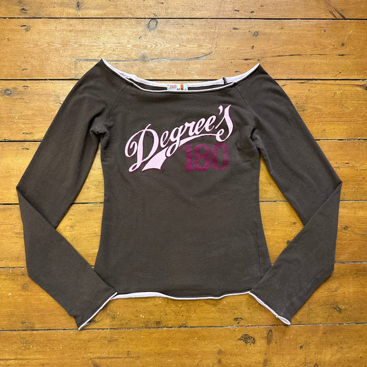 vintage 00s brown and pink off shoulder long sleeve top