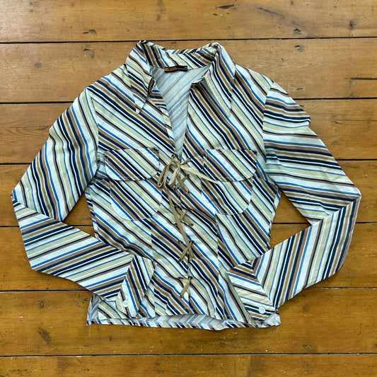 vintage 00s brown and blue stripe shirt