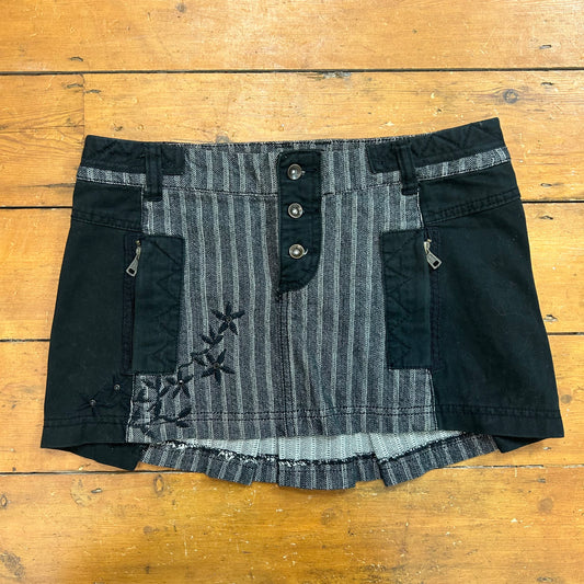 vintage 00s black striped cargo style mini skirt