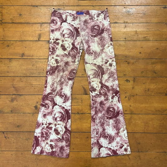 vintage 00s pink floral cord trousers