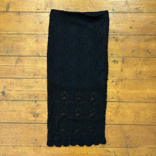 vintage 00s black lace midi skirt