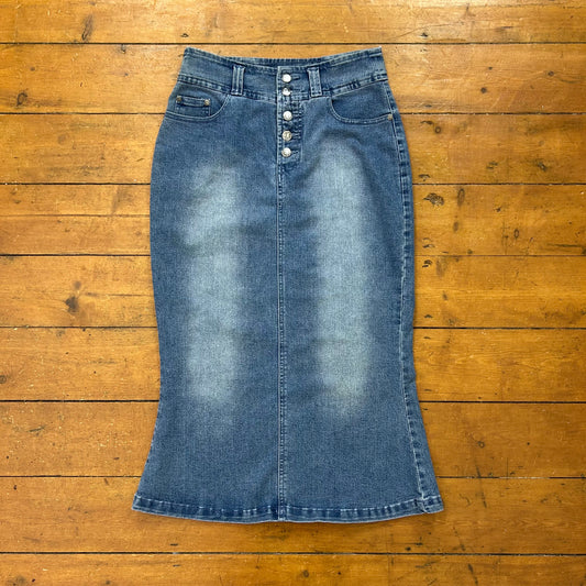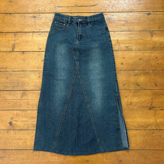 vintage 00s mid wash denim maxi side split skirt