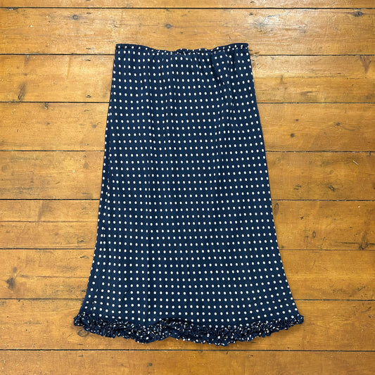 vintage 00s navy polka dot midi skirt