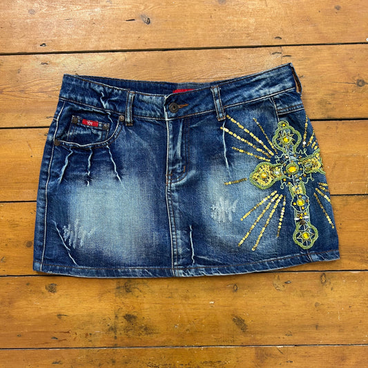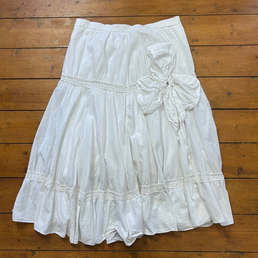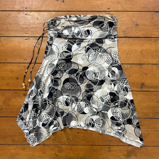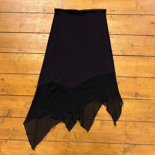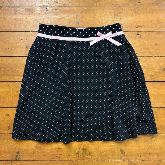 vintage 00s black polka dot asymmetrical midi skirt with belt