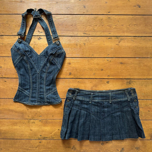 vintage 00s denim top and mini skirt co ordRegular price £48.00 GBPRegular priceUnit price / per-