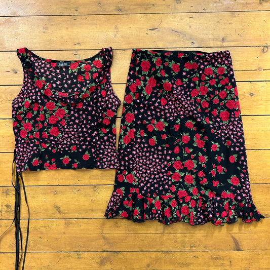 vintage 00s black floral print mesh skirt and top co ordRegular price £56.00 GBPRegular priceUnit price / per-