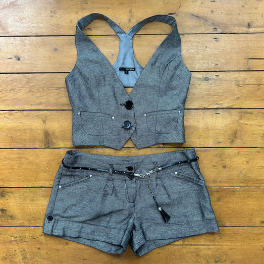 vintage 00s grey waistcoat and shorts co ordRegular price £35.00 GBPRegular priceUnit price / per-