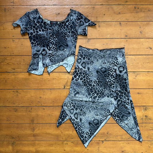 vintage 00s grey animal print asymmetrical top and skirt co ordRegular price £58.00 GBPRegular priceUnit price / per-