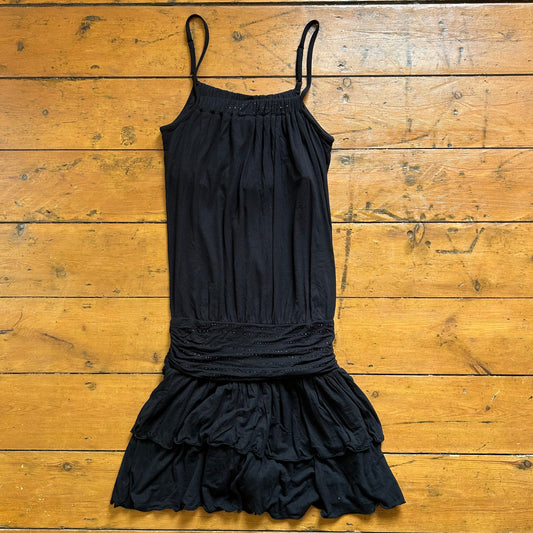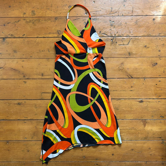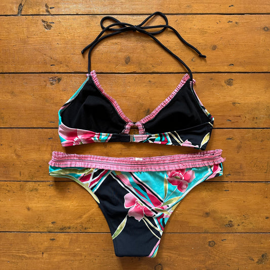 vintage 00s black o ring bikini with pink and blue floral pattern