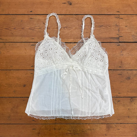 vintage 00s dainty white cami with broderie bust