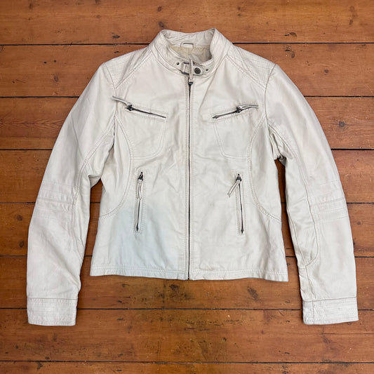 vintage 00s white leather biker jacket
