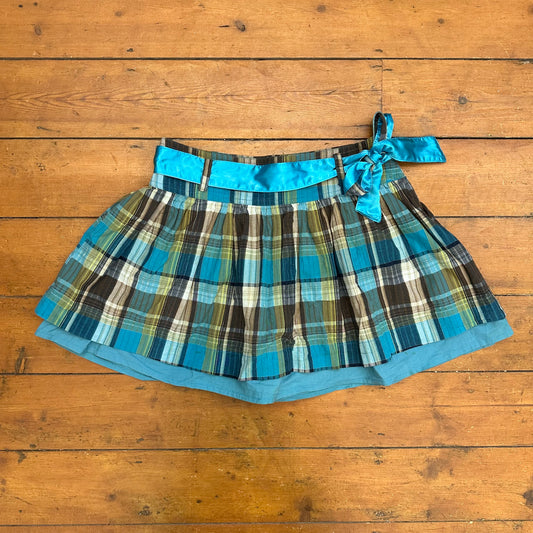 vintage 00s blue and brown checkered mini skirt