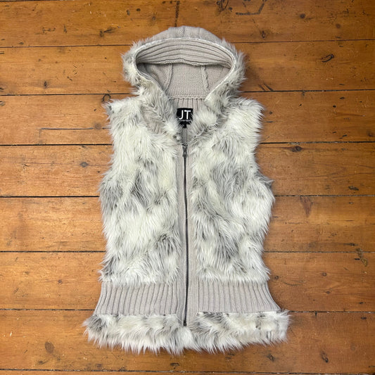 vintage 00s grey faux fur hooded gilet