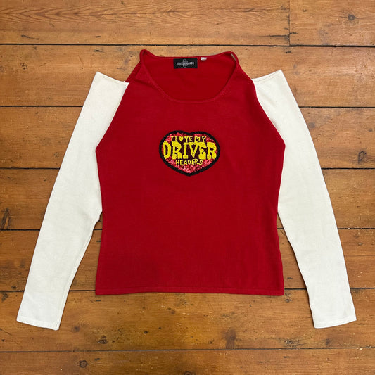 vintage 00s red cold shoulder knit beaded top