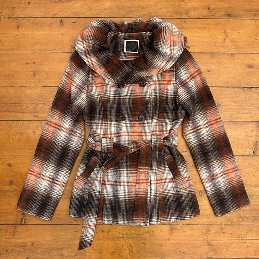 vintage 00s brown and orange checkered coat