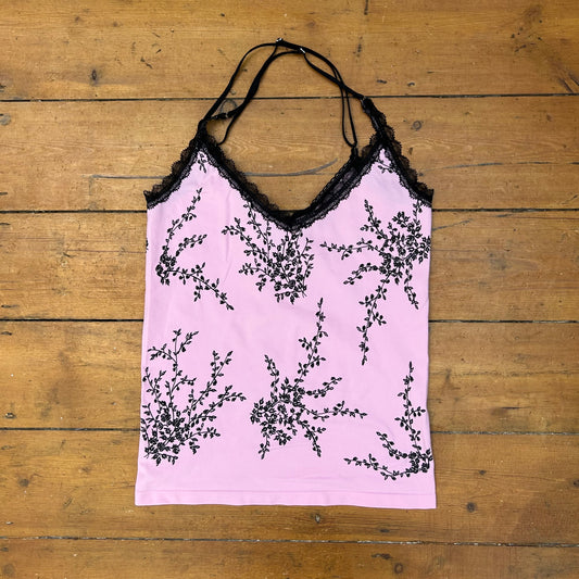 vintage 00s black and pink floral cami