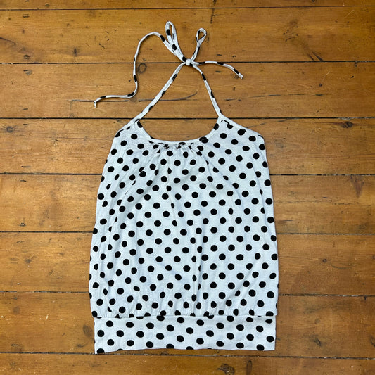 vintage 00s white and black polka dot halter top