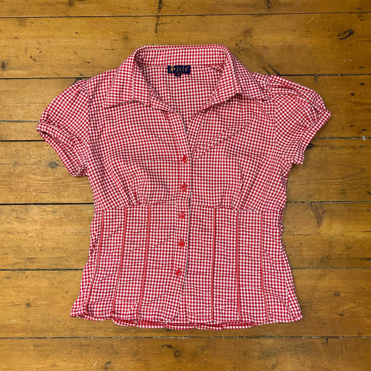 vintage 00s red and white gingham short sleeve shirt