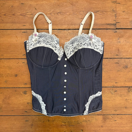 vintage 00s navy blue lace trim corset