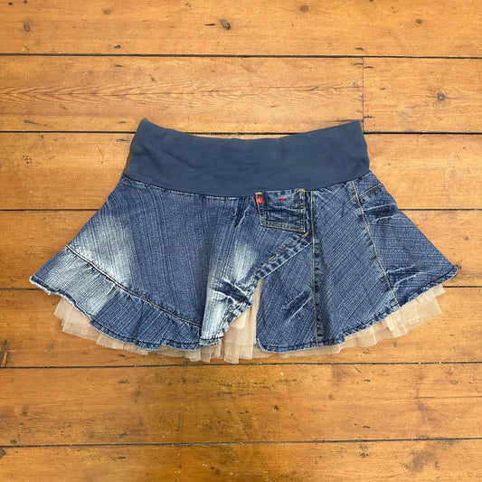 vintage 00s denim mini skirt with tutu underlay