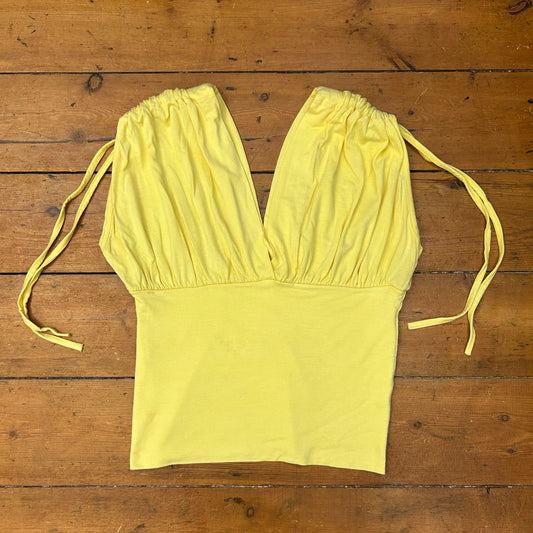 vintage 00s yellow low cut ruched top