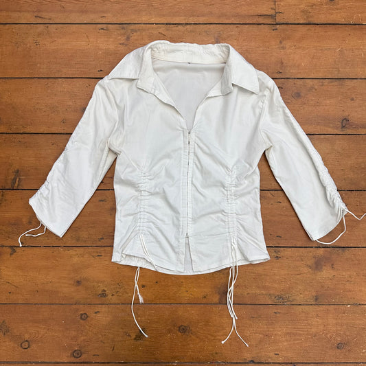 vintage 00s white ruched hook and eye shirt