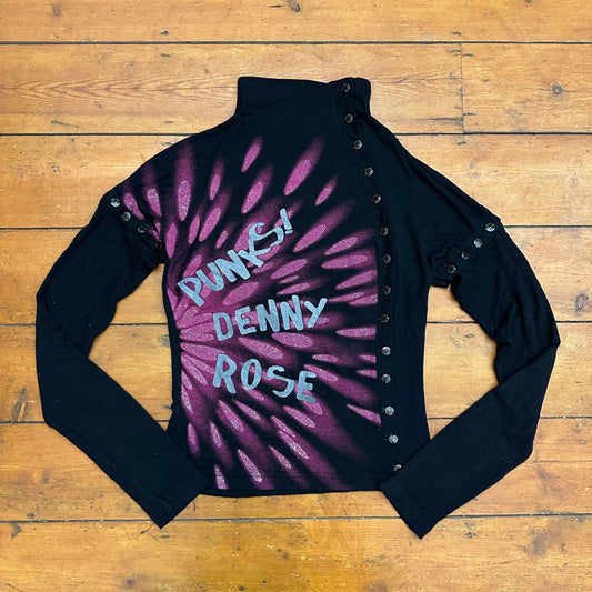 vintage 00s black high neck graphic top with removable sleeves