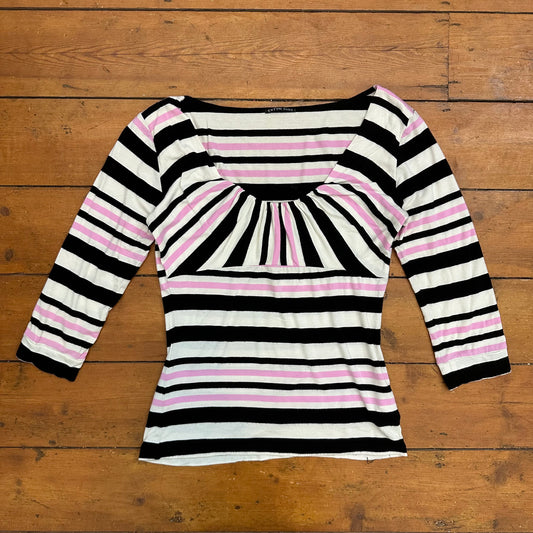 vintage 00s black and pink striped crop sleeve top