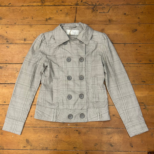 vintage 00s black and grey check double breasted coat