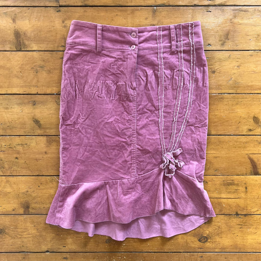 vintage 00s pink cord flower detail midi skirt