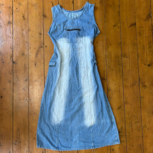 vintage 00s washed denim tie back midi dress