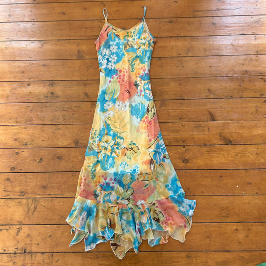vintage 00s floral mesh midi dress