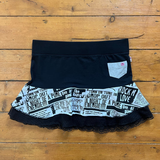 vintage 00s guess jeans black and white graphic mini skirt