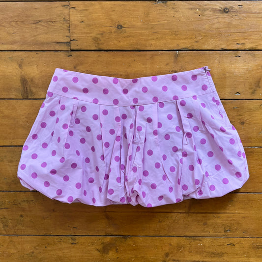 vintage 00s pink and purple polka dot bubble mini skirt