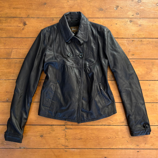 vintage 00s black leather peacoat