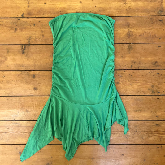 vintage 00s green fairy hem strapless mini dress