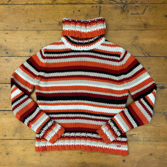 vintage 00s orange chunky striped turtleneck jumper