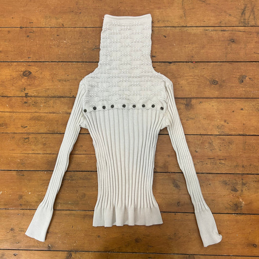 vintage 00s beige ribbed button long sleeve top