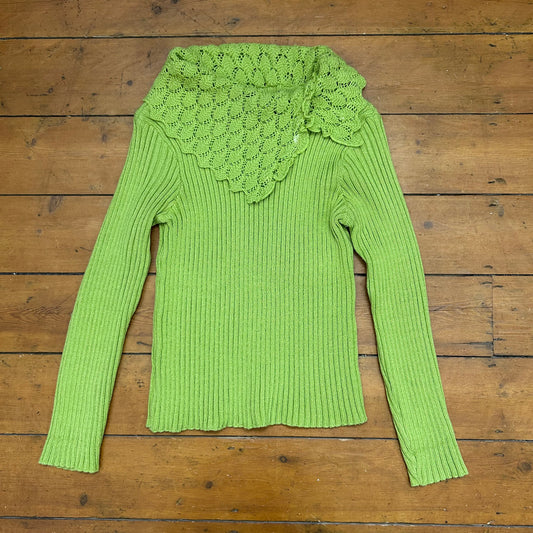 vintage 00s green knitted crochet collar jumper