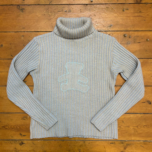 vintage 00s blue and beige teddy bear jumper