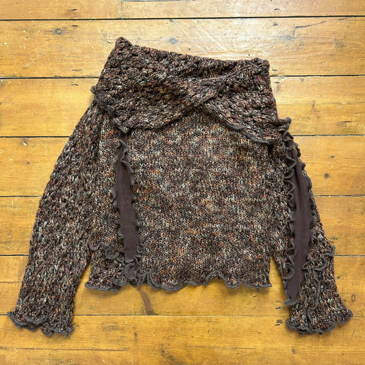vintage 00s brown knitted off shoulder jumper