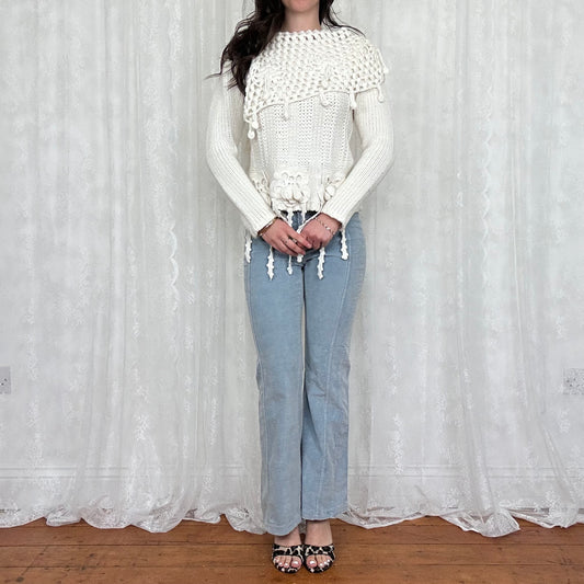 vintage 00s white knitted fringe gilet