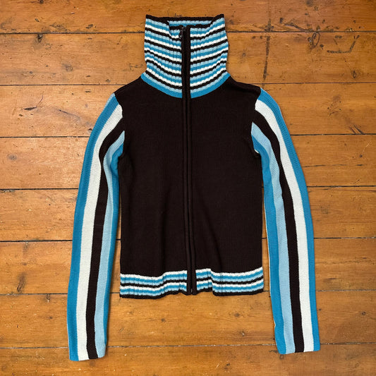 vintage 00s brown and blue knitted zip up jumper