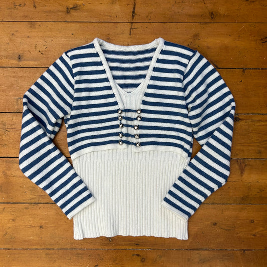 vintage 00s blue and white striped knitted top